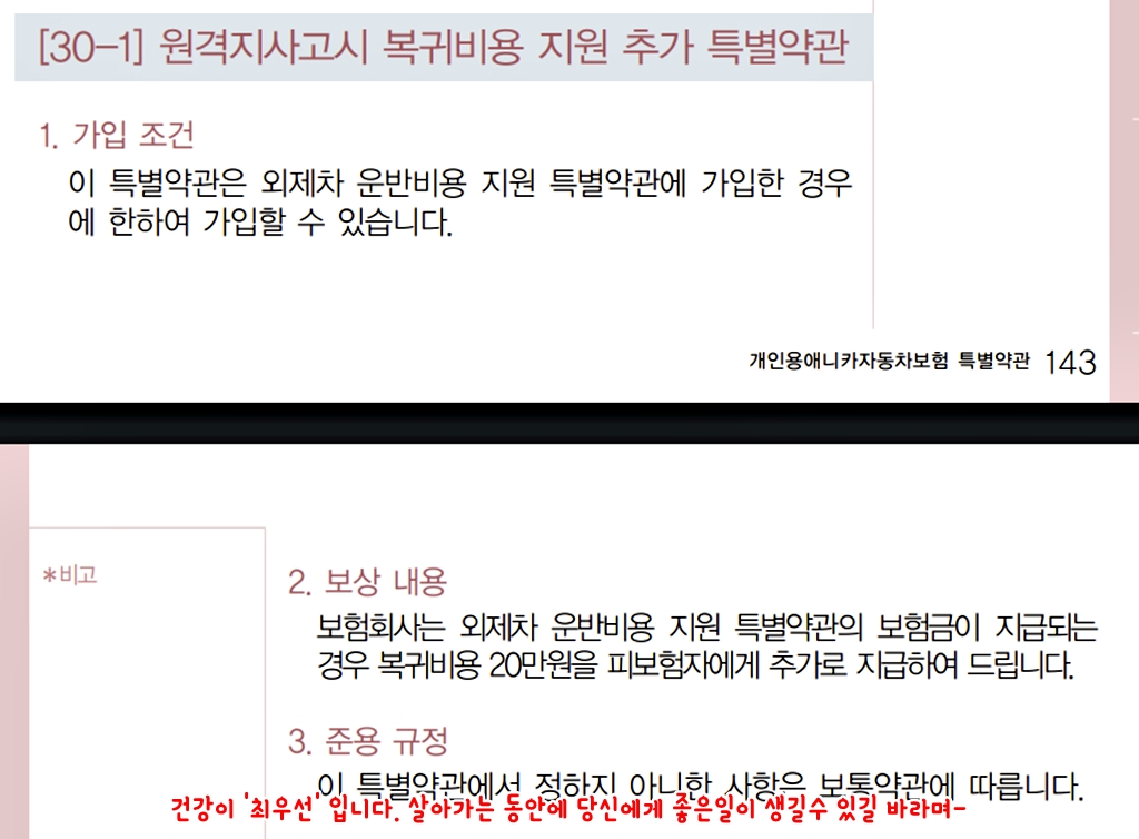 저는 현재는 설계사로 일하고 있기 때문에 이런 부분들을 잘 알고 주변분들이 자동차보험을 저에게로 이전하거나 갱신할 때 이런 부분을 꼭 가입하라고 안내하고 있는데요, 저렴하다고 다이렉트로 가입하는 분들은 이런 부분을 놓칠 수도 있습니다. 디렉트로 하는 분들도 만약 이 글을 본다면 자동차보험에서 가입할 수 있는 특약 중 좋은 부분은 꼭 챙겼으면 하는 바람입니다. 개인적인 견해로, 특약이라는 것은 내 돈을 내고 추가로 보장받는 내역인 만큼 그 효용성이 좋은 경우가 많습니다.