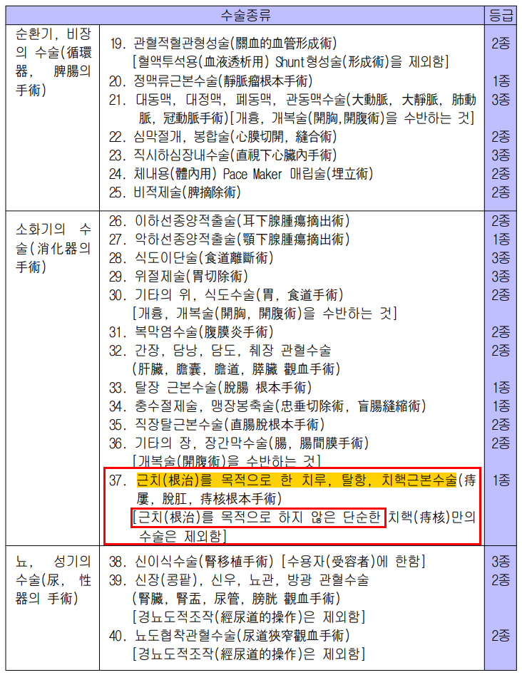 일상생활 속에서 가장 흔하게 볼 수 있는 것이 바로 치루입니다. 치루는 항문 주위에 고름이 나오고 통증과 가끔 피가 나는 경우로 볼 수 있습니다. 따갑고, 쓰리고, 피나고 정도의 증상이라면 이런 경우에 해당한다고 볼 수 있습니다. 현재의 '질병수술비'에서는 치질이나 치루 등을 제외하고 있지만 종수술의 경우에는 앞서 말한 것처럼 간단한 시술과 같은 형태도 지급하고 있습니다. 물론 지금은 간단한 것으로 치부되고 있지만, 과거에는 이 것도 어려운 축에 들어있었으니 그렇게 이해해야 할 것 같습니다.